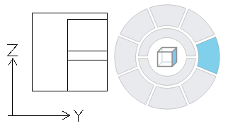 - The Outer Ring provides a set of eight sectors for quickly switch between standard and isometric views of your model. Each sector of the Outer Ring corresponds to a view. When you click on a sector, the software moves the scene to the corresponding view.