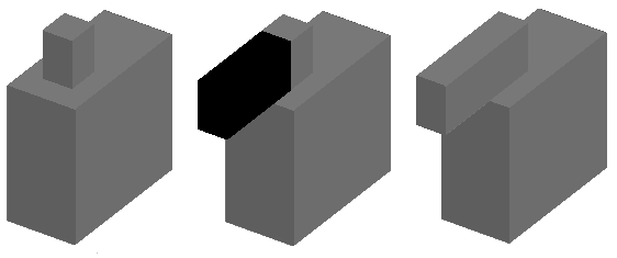 Vous pouvez cliquer à l'intérieur d'une entité (zone ou solide 3D) ou d'une face d'un solide 3D, afin de la faire glisser vers l'intérieur ou l'extérieur. Vous pouvez ainsi créer un trou ou une extrusion.