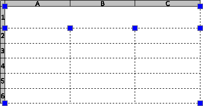 選択されたセルがハイライトされ、グリップと共に表示されます。列と行ヘッダーが表示されます。