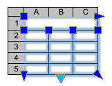- Dopasować szerokość zaznaczonej kolumny za pomocą lewego lub prawego uchwytu, oraz zmienić wysokość zaznaczonego wiersza za pomocą górnego lub dolnego uchwytu.