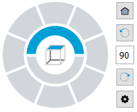 Każdy sektor pierścienia zewnętrznego odpowiada oddzielnemu widokowi. Wskazanie jednego z przycisków powoduje dopasowanie punktu obserwacji aktualnej sceny projektu do wybranego widoku. |
