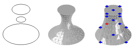 Şekli değiştirmek için katı profilinde (katıyı tanımlayan kapalı 2B obje) görüntülenen OTutmalar kullanın.